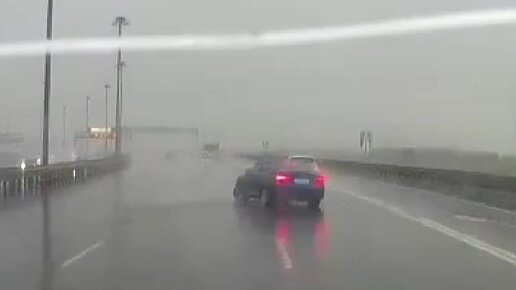 Иномарка премиум-класса исполнила «пируэт» на мокром КАДе