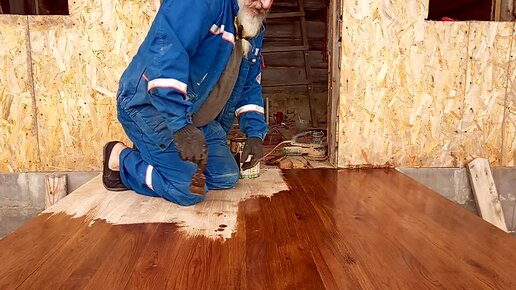 Покрываю дубовый пол на новом крыльце пропиткой биотекс. Своими руками в реальном времени.