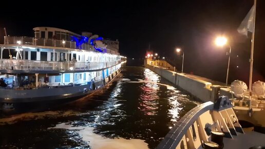 Ночное шлюзование двух теплоходов в Балаково.