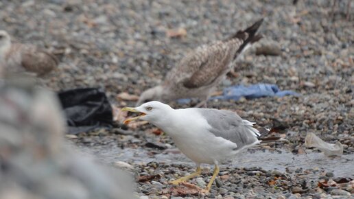 Средиземноморские чайки пируют у берега Черного моря