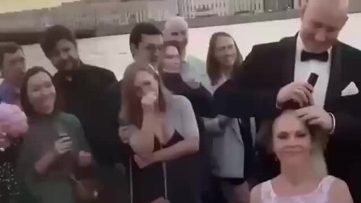 Если ваша вечеринка не похожа на эту... В Петербурге жених во время свадьбы побрил налысо жену. Даже тамада в шоке