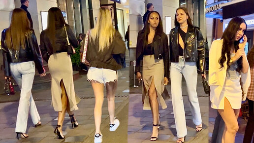 Девушки сняли шорты и утеплились,но по прежнему красивы.Как одеваются русские девчули