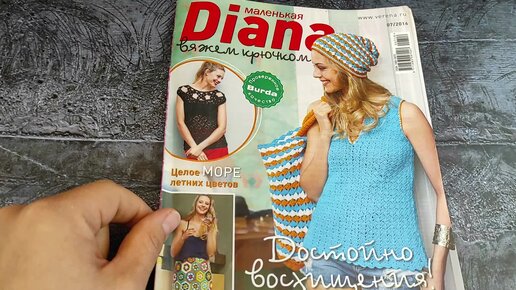 Смотрим журнал Diana, вязание крючком. Летняя шапочка, топы, сумка