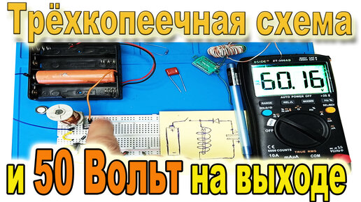 🎥 Трёхкопеечная Схема- и 50 Вольт на выходе- питать можно от Батарейки 1,5 V (DC DC преобразователь)