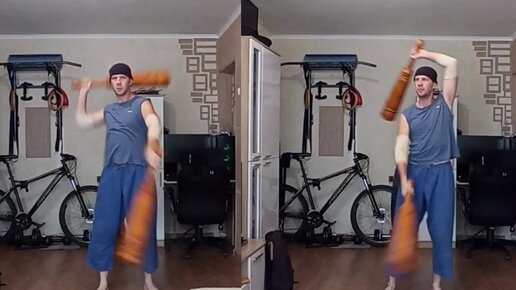 Попеременные махи булавами 2 по 3 кг "причëсывания". Восходящий и нисходящий вариант.