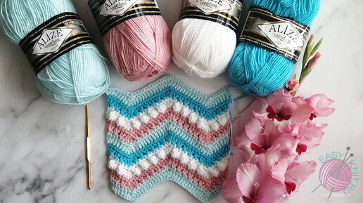Объемный узор крючком для пледа, подушки