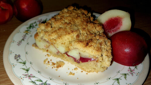 Очень вкусный, ароматный, рассыпчатый, в меру сладкий пирог с персиками