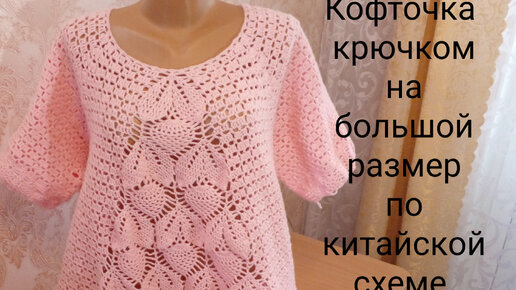 Кофточка крючком на большой размер по китайской схеме. Часть 2 (1-7 ряды).