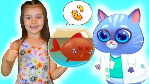 Арина помогает Бубу лечить рыбку | Котик Bubbu и Арина играют вместе в игре