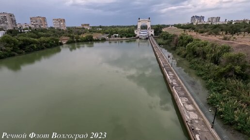 Пассажирский теплоход Александр Радищев выходит из шлюза №1 ВДСК