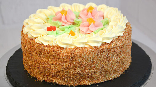 Всеми любимый Торт "Бисквитно-кремовый" из СССР. С мокрыми бисквитными коржами и вкуснейшим масляным кремом. Простой рецепт домашнего торта