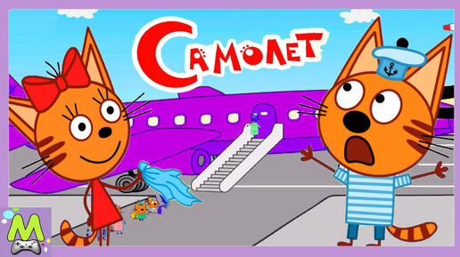 Три Кота Поездка на Самолете.Интересные Приключения с Коржиком Карамелькой и Компотом.Мультик Игра