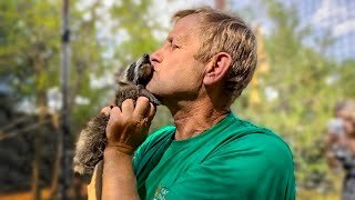 Олег Зубков пришел в гости к енотику Тимоше и гамадрилятам, а Люська увидя директора РВАНУЛА ВВЫСЬ)