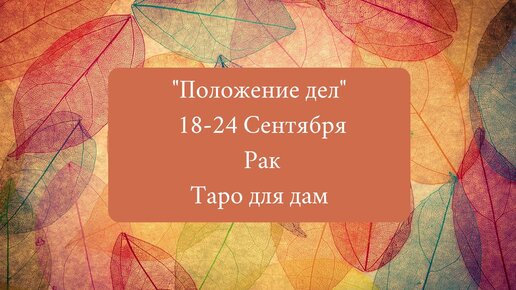 Рак 18-24 Сентября "Положение дел" Дамы.