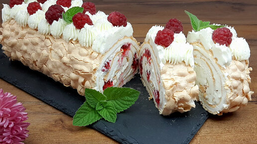 ЭТОТ ОСЕННИЙ ДЕСЕРТ ПРОСТО ТАЕТ ВО РТУ !!! МЕРЕНГОВЫЙ РУЛЕТ С МАЛИНОЙ !!!