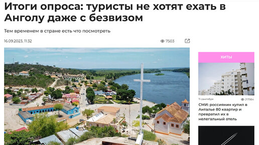 Новости туризма 16/09/2023 Итоги опроса: туристы не хотят ехать в Анголу даже с безвизом #туризм