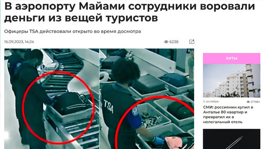 Новости туризма 16/09/2023 В аэропорту Майами сотрудники воровали деньги из вещей туристов #туризм