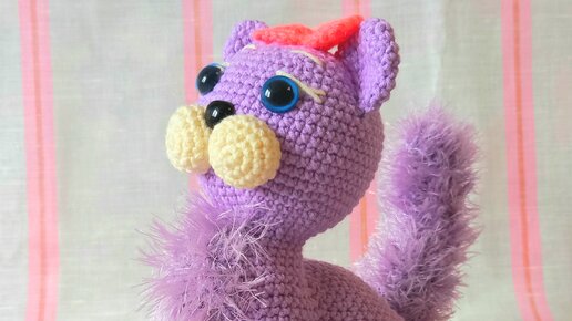 Лиловая кошечка крючком, кошечка амигуруми крючком, как связать красивую кошечку крючком, сидящая кошка крючком, бесплатное описание