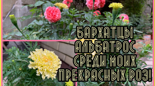 Бархатцы Альбатрос среди моих прекрасных Роз! Эксперимент закончен❗️Подвожу итог❗️(бархатцы Петит Спрай/ лобелия Сапфир/ лобелия Ривьера микс)