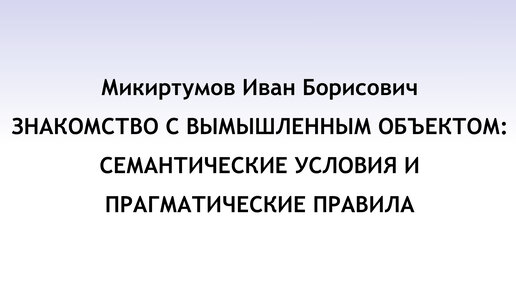 20230917: Иван Микиртумов, Знакомство с вымышленным объектом