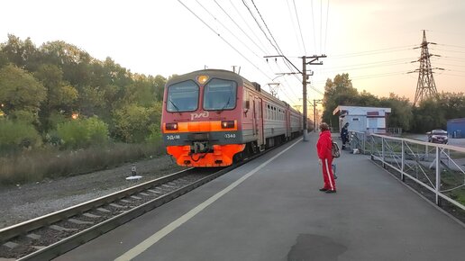 Электропоезд ЭД4М-0340 прибывает и отправляется с о.п. Совхоз Бердский