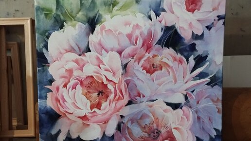 Рисуем в акварельной технике акриловыми красками пионы "Красавцы"