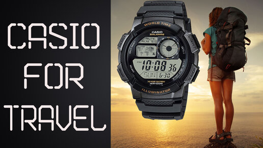 Часы Casio AE - 1000 W / World Time. Illuminator / Часы для туристов - путешественников