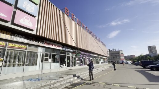 Мойка фасада Вешняковского рынка в Москве на оборудовании Клиндо
