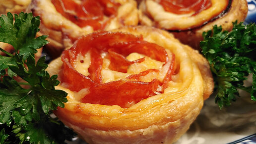 Закусочные розочки "А-ля пицца" из слоеного теста