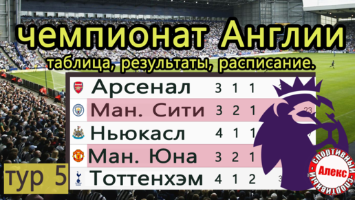 Чемпионат Англии по футболу (АПЛ). 5 тур. Результаты, расписание, таблица.