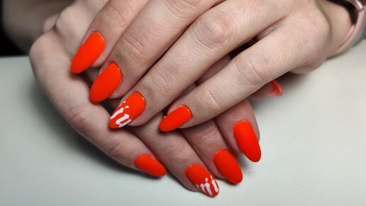 Оранжевый и нюдовый, маникюр с велюровый топом 💥