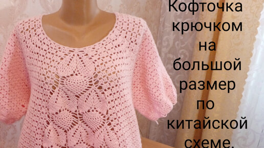 Кофточка крючком на большой размер по китайской схеме. Часть 4( 14 по 21ряды).
