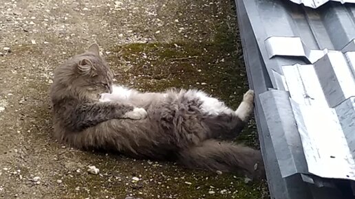 Кошка Машка прихорашивается.