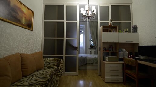 поделили комнату на две зоны/ремонт в студии/современный интерьер/зонирование в студии