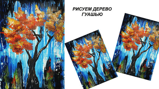 Картина для интерьера. Осеннее дерево гуашью. Необычный способ рисования. Как нарисовать дерево легко.