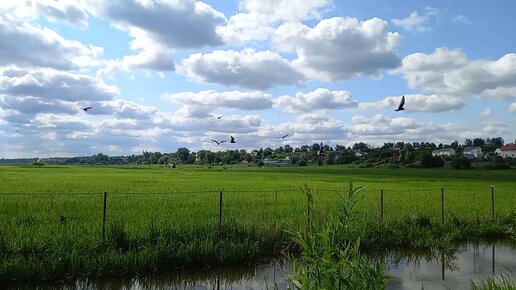 Белокрылые крачки над болотом