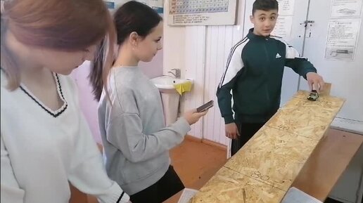 Ученики 9-го класса делают опыты по физике. Процесс прямолинейного движения по наклонной плоаскости