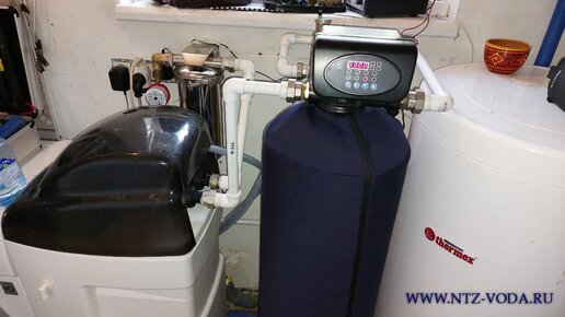 Обезжелезивание и умягчение воды для частного дома. Установка осадочной колонны с клапаном автомат. Скважина.