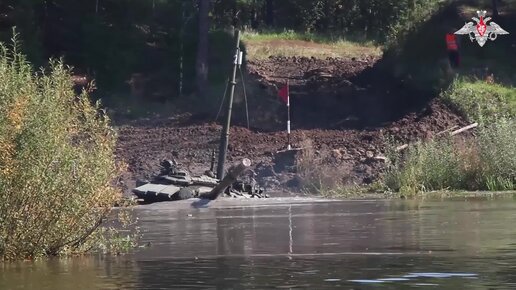 Военнослужащие по призыву отработали подводное вождение танков Т-72Б3 на специализированном вододроме