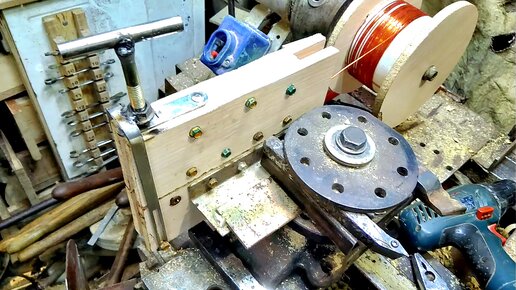 Простой выравниватель обмоточных проводов. Катушки для провода из древесностружечных плит и сантехнических труб.