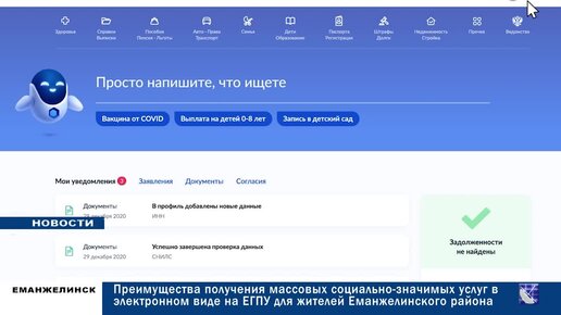 Преимущества получения массовых социально-значимых услуг в электронном виде на ЕГПУ для жителей Еманжелинского района