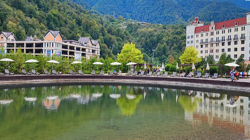 Пляж Rosa Beach в горах на Роза Хутор. Эсто-Садок