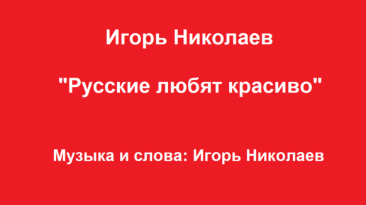 Игорь Николаев "Русские любят красиво"