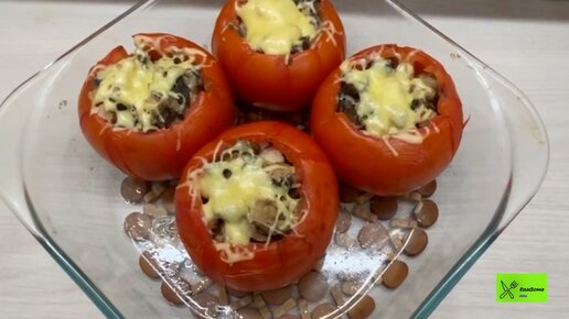 Побалуем себя вкусняшкой! Фаршированные помидоры шампиньонами и филе куриным! Мммм....Вкусно и не калорийно!