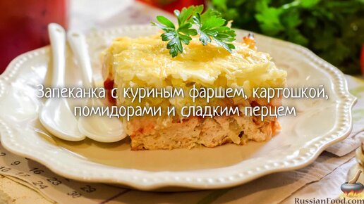 Ароматное и очень вкусное блюдо на каждый день, которое легко готовится. Запеканка с куриным фаршем, картошкой, помидорами и сладким перцем