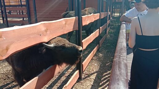 Кормление зубра с рук