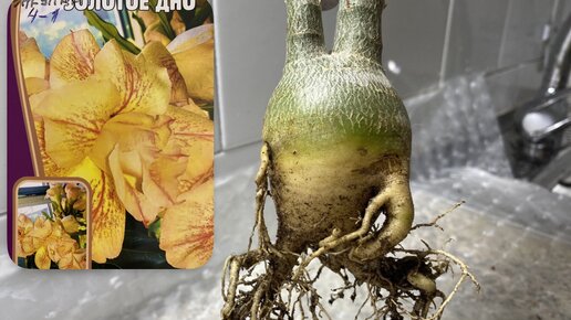 Адениум. Пересадка «редисочки» с двумя макушками :) Сорт «Золотое дно». 20 сентября 2023 г.