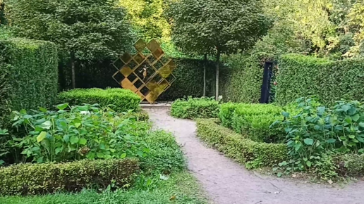Денежный сад и скульптура "Фея Главбух" в парке "Сокольники" города Москвы