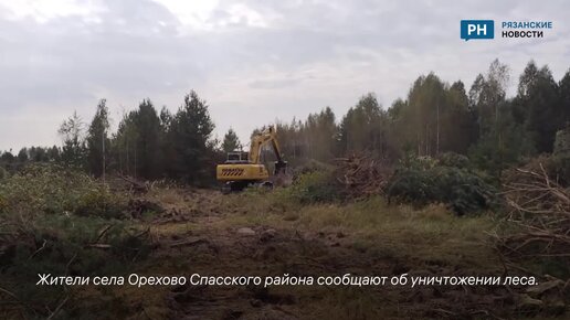 У села в Рязанской области спецтехника выкорчёвывает лес