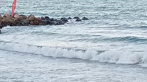 Море разбушевалось и затопило пляж. Чёрное море, Болгария.